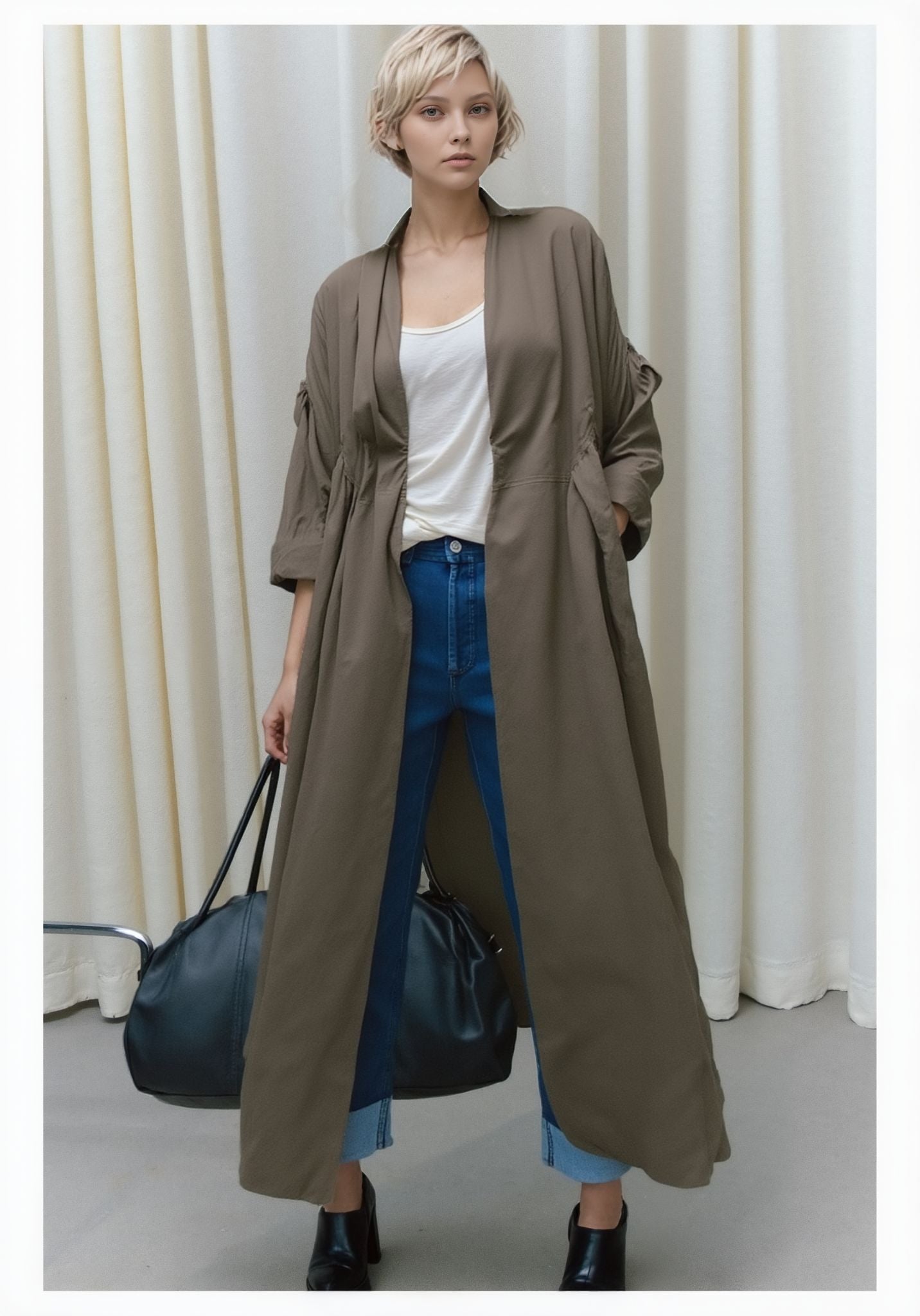 This relaxed fit long drape cardigan with wide sleeves for women adds softness and movement to any outfit. The open-front design and loose silhouette create an easygoing feel, while the wide sleeves enhance its laid-back look. A versatile piece for transitional weather or cozy styling.