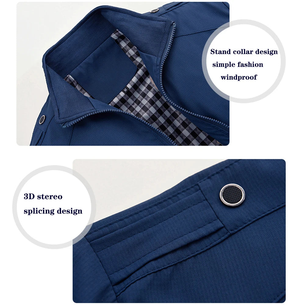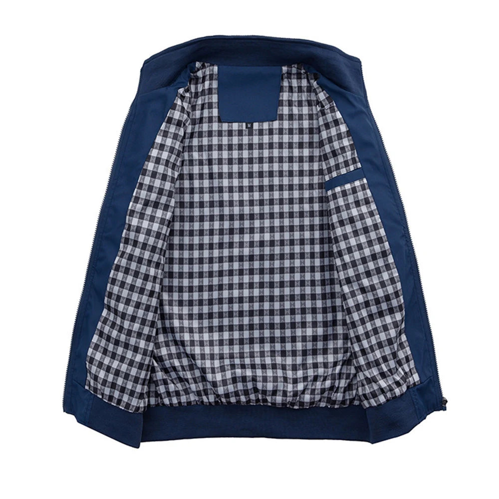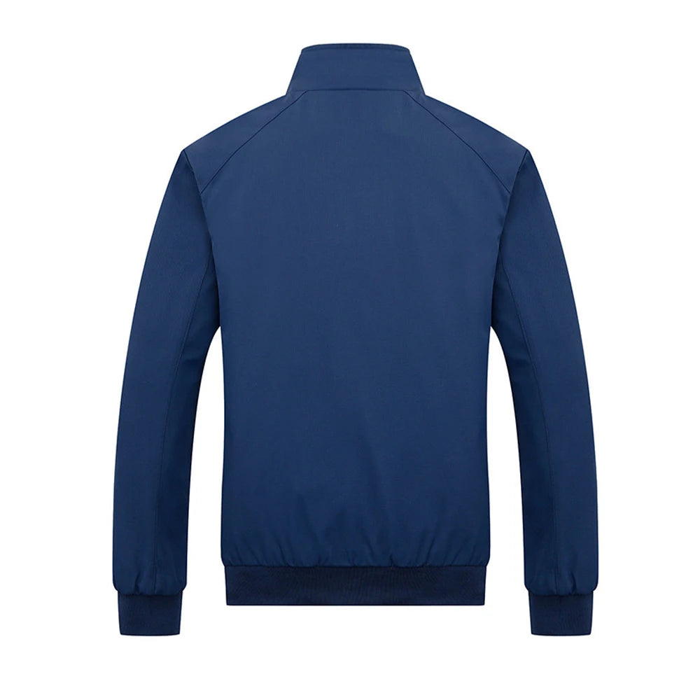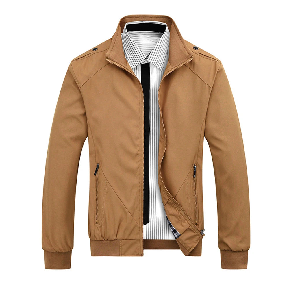This smart casual zip-up bomber jacket with shirt collar for men blends classic tailoring with laid-back appeal. The structured shirt-style collar adds polish, while the bomber silhouette keeps it relaxed. A versatile piece to layer over tees or button-downs for a clean, put-together look.