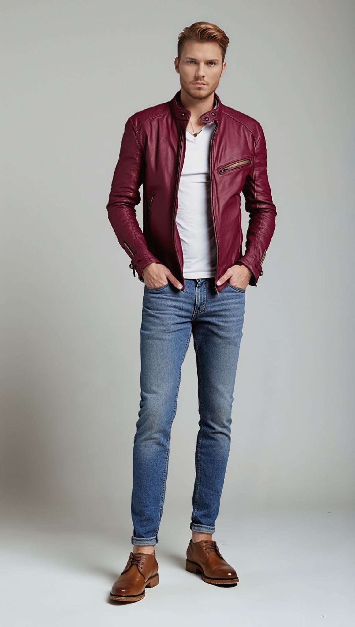 This zip-up faux leather moto jacket for men brings bold character to any casual outfit. The sleek surface and sharp seams create a confident silhouette, while the zip closure and utility-inspired details keep it functional and easy to style. A go-to layer for transitional weather and city looks.